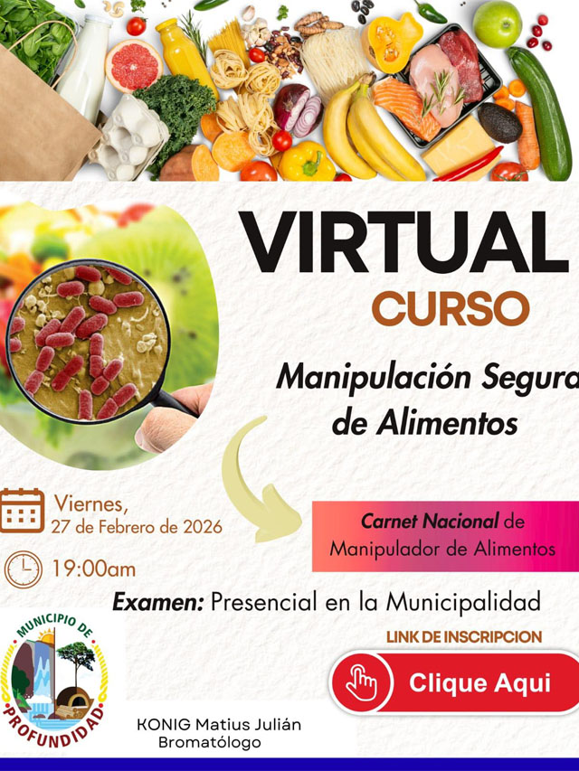 MISIONES.UNO – En Profundidad, el municipio anunció la realización de un curso virtual de Manipulación Segura de Alimentos, previsto para el viernes 27 de febrero de 2026 a las 19 horas. La capacitación es requisito fundamental para quienes trabajan en contacto con productos alimenticios y permitirá obtener el Carnet Nacional de Manipulador de Alimentos.